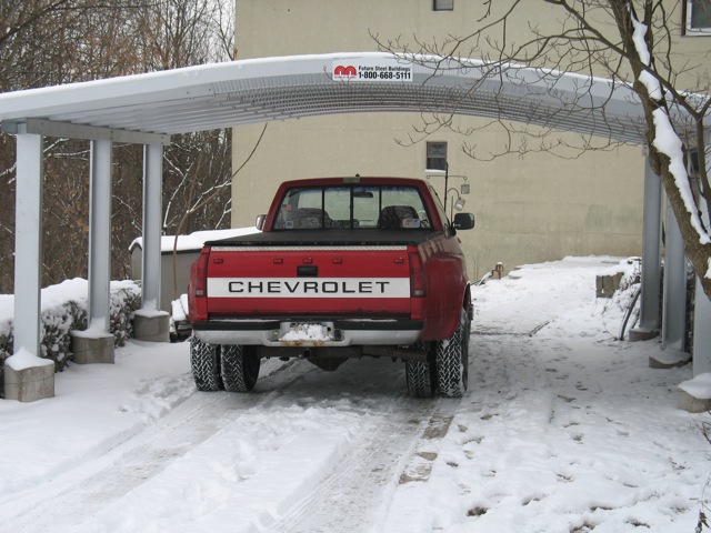 These carports offer all of the snow blocking protection of a garage, but they're made primarily of recycled steel, and can be customized to fit your vehicle requirements.